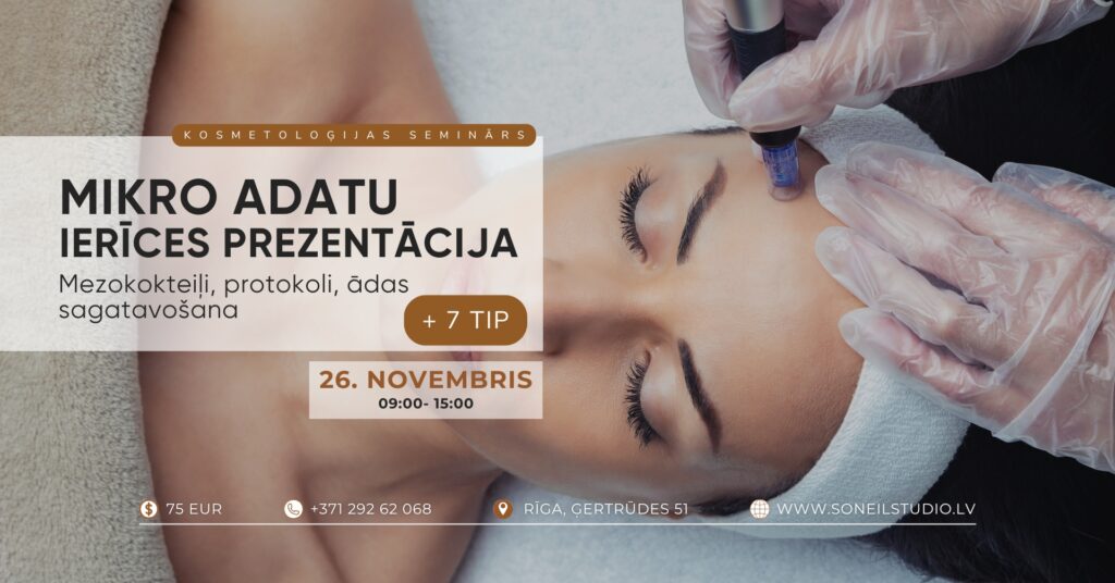 - Mezokokteiļi, procedūru protokoli, ādas sagatavošana mikro adatu procedūrai. Pareiza tehnikas izvēle, darbs uz modeļa.