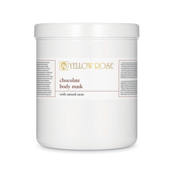Yellow Rose Chocolate Body Mask – Pretcelulīta šokolādes maska ķermenim. Nomierina, atslābina, tonizē ādu un modelē ķermeņa siluētu. Sastāvā esošais salicilskābes derivāts piedod pretcelulīta efektu. Maska ķermenim uz gēla bāzes, ar dabīgo kakao un citām aktīvām sastāvdaļām, kas nomierina, atslābina, tonizē ādu un modelē ķermeņa siluētu.Lietošanas laikā, izbaudot šokolādes aromātu un pieskārienu ķermenim, atbrīvosiet ķermeni no uzkrātās spriedzes, un sajūtas pacels Jūs virs zemes. Chocolate Body Mask – Pretcelulīta šokolādes maska ķermenim satur kofeīnu un teobromīnu, kurus izmanto novājēšanas un pretcelulīta terapijās, jo tie palīdz izšķīdināt liekos taukus un nostiprināt ādu. Efektīvi kombinēt ar citiem Yellow Rose Chocolate Body līnijas produktiem.