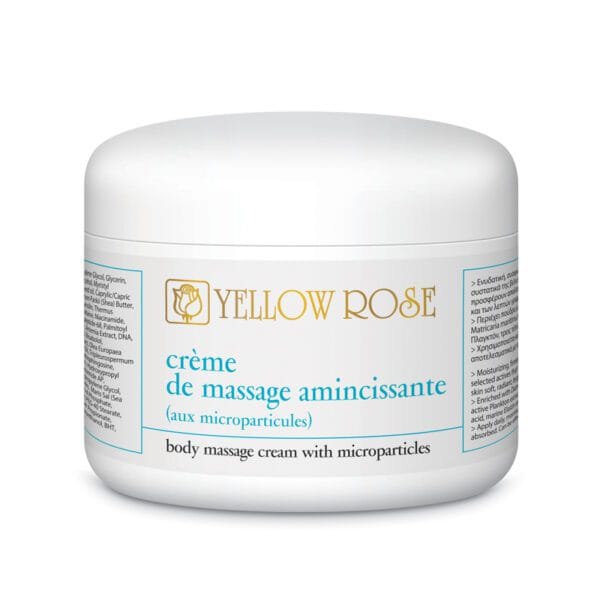 Yellow Rose Creme De Massage Amincissante – Ķermeņa masāžas krēms ar mikrogranulām un aktīvām sastāvdaļām. Smalkās eksfoliējošās mikrogranulas un to sastāvā esošās AHA vielas eksfoliē ādu un vienlaikus ļauj vieglāk uzsūkties un ļaujot citām lipolītiskajām un nostiprinošajām sastāvdaļām iekļūt cauri raga slānim un efektīvāk iedarboties. Creme De Massage Amincissante – Ķermeņa masāžas krēms ar mikrogranulām piemērots slaidinošām un pretcelulīta ķermeņa masāžas procedūrām. Kofeīns un karnitīns darbojas sinerģiski, palielinot ādas tvirtumu, elastību, tonusu un lipolītisko iedarbību.