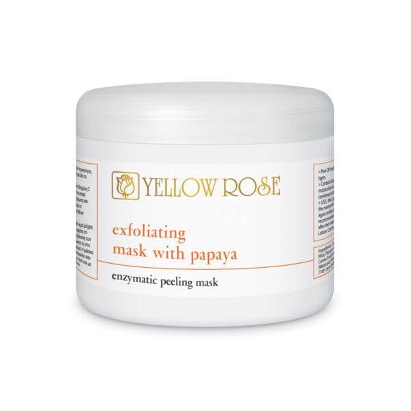 Yellow Rose Exfoliating Mask with Papaya – Attīrošā algināta maska ar papaijas enzīmu uz alginātu bāzes. Maigi attīra ādu no atmirušajām šūnām, mīkstina, mitrina un atjauno ādu. Exfoliating Mask with Papaya – Attīrošā algināta maska piemērota visiem ādas tipiem.