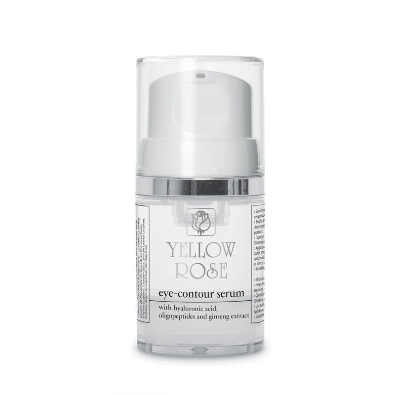 Yellow Rose Eye Contour Serum – Nostiprinošs acu serums. Satur hialuronskābi, oligopeptīdus un žeņšeņa ekstraktu. Mitrinošs, nostiprinošs pretgrumbu efekts. Izlīdzina vidēji dziļas grumbiņas un mīmikas krunciņas. Lieliski izgaismo tumšos lokus, uzlabo ādas elastību, padarot acu zonu atsvaidzinātu, tonizētu un izgaismotu. Eye Contour Serum – Nostiprinošs acu serums piemērots visiem ādas tipiem.