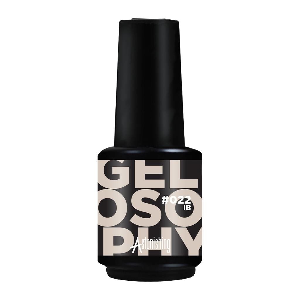 Gelosophy Gel Nail Polish gēla nagu laka #022 IB ir augstas kvalitātes profesionāla laka. Gelosophy ir Astonishing zīmola gēla laku sistēma un viens no populārākajiem zīmola produktiem. Uzņēmums regulāri palielina sistēmas sortimentu. Pigmentētas Gelosophy Gel Nail Polish UV lakas, izlīdzinošas bāzes un dažāda veida virskārtas padara Gelosophy sistēmu par zīmola pārdošanas līderi.
