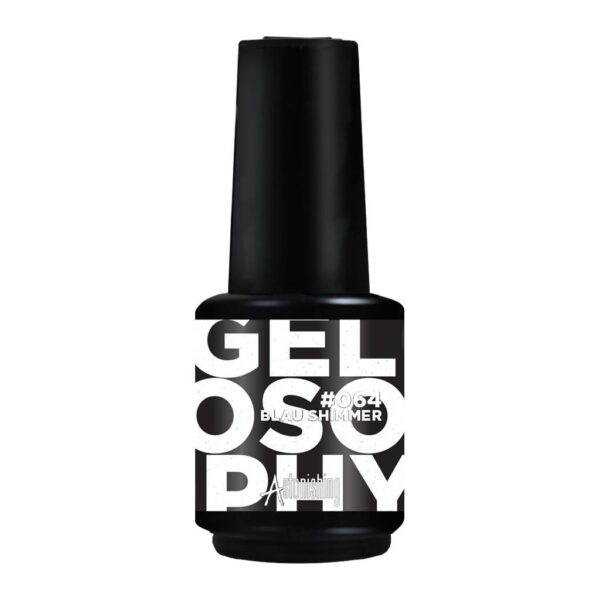 Gelosophy Gel Nail Polish gēla nagu laka #064 Blau Shimmer ir augstas kvalitātes profesionāla laka. Gelosophy ir Astonishing zīmola gēla laku sistēma un viens no populārākajiem zīmola produktiem. Uzņēmums regulāri palielina sistēmas sortimentu. Pigmentētas Gelosophy Gel Nail Polish UV lakas, izlīdzinošas bāzes un dažāda veida virskārtas padara Gelosophy sistēmu par zīmola pārdošanas līderi.