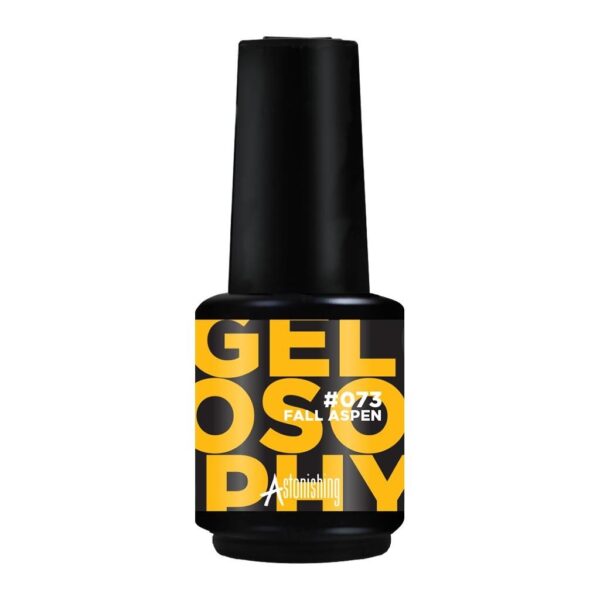 Gelosophy Gel Nail Polish gēla nagu laka #073 Fall Aspen ir augstas kvalitātes profesionāla laka. Gelosophy ir Astonishing zīmola gēla laku sistēma un viens no populārākajiem zīmola produktiem. Uzņēmums regulāri palielina sistēmas sortimentu. Pigmentētas Gelosophy Gel Nail Polish UV lakas, izlīdzinošas bāzes un dažāda veida virskārtas padara Gelosophy sistēmu par zīmola pārdošanas līderi.
