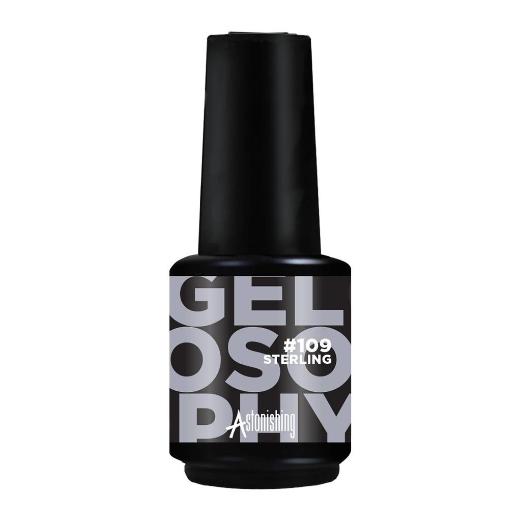 Gelosophy Gel Nail Polish gēla nagu laka #109 Sterling ir augstas kvalitātes profesionāla laka. Gelosophy ir Astonishing zīmola gēla laku sistēma un viens no populārākajiem zīmola produktiem. Uzņēmums regulāri palielina sistēmas sortimentu. Pigmentētas Gelosophy Gel Nail Polish UV lakas, izlīdzinošas bāzes un dažāda veida virskārtas padara Gelosophy sistēmu par zīmola pārdošanas līderi.