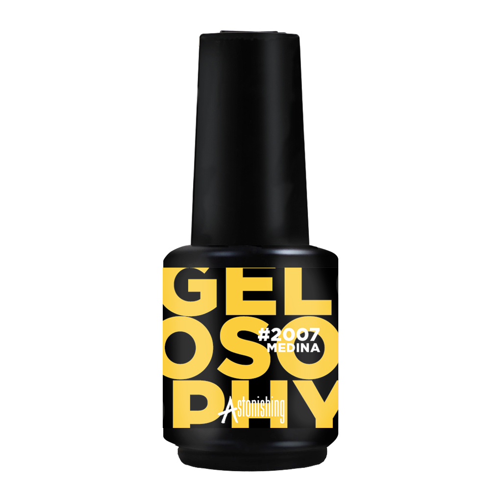 Gelosophy Gel Nail Polish gēla nagu laka #2007 Medina ir augstas kvalitātes profesionāla laka. Gelosophy ir Astonishing zīmola gēla laku sistēma un viens no populārākajiem zīmola produktiem. Uzņēmums regulāri palielina sistēmas sortimentu. Pigmentētas Gelosophy Gel Nail Polish UV lakas, izlīdzinošas bāzes un dažāda veida virskārtas padara Gelosophy sistēmu par zīmola pārdošanas līderi.
