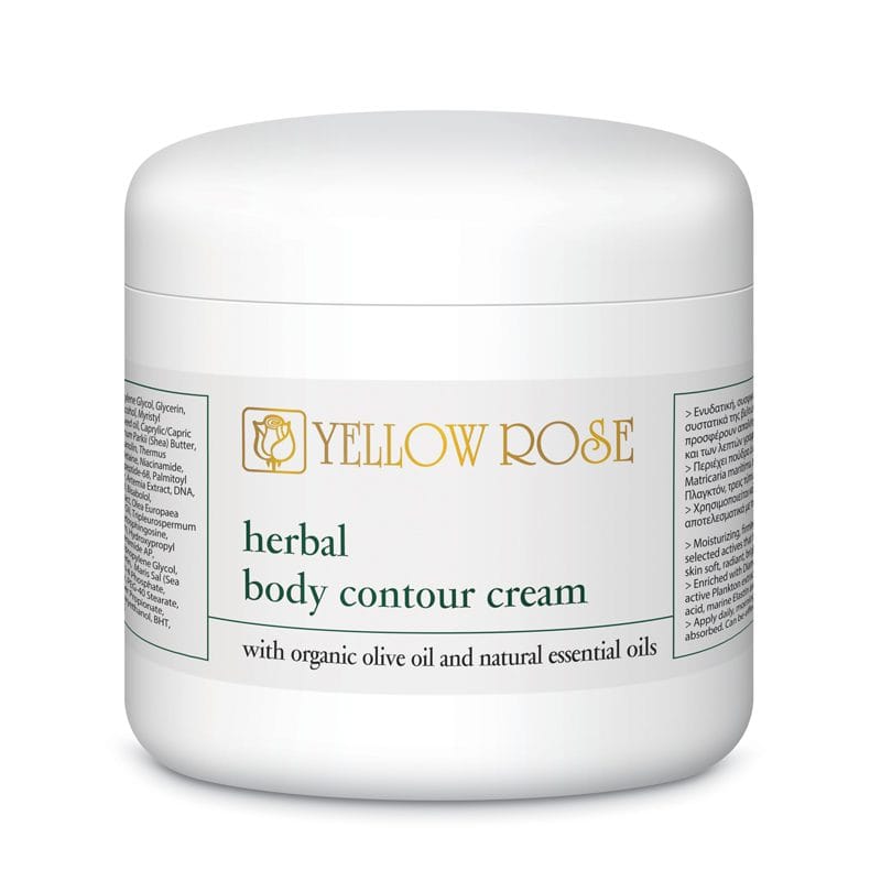 Yellow Rose Herbal Body Contour Cream – Ķermeņa krēms notievēšanai ar augu ekstraktiem. Bagātīgs ķermeņa krēms ar īpaši dabisku lipolītisku augu maisījumu. Viegla un samtaina tekstūra pilnībā uzsūcas, neatstājot ādu taukainu. Ķermeņa apjoma samazināšanas efekts, apvienots ar svaigu un līdzsvarotu citrusaugļu ēterisko eļļu aromātu, kas tonizē ķermeni, cīnās ar tauku depo, ar dziļu pretcelulīta iedarbību. Nesatur kofeīnu, tāpēc ir piemērots lietošanai homeopātijas terapijas laikā. Augsta ēterisko eļļu satura dēļ ieteicams izvairīties no lietošanas grūtniecības laikā, sauļojoties un uz ādas tipiem, kas jutīgi pret ēteriskajām eļļām. Herbal Body Contour Cream – Ķermeņa krēms notievēšanai efektīvi kombinējams ar Yellow Rose Herbal Body līnijas produktiem.