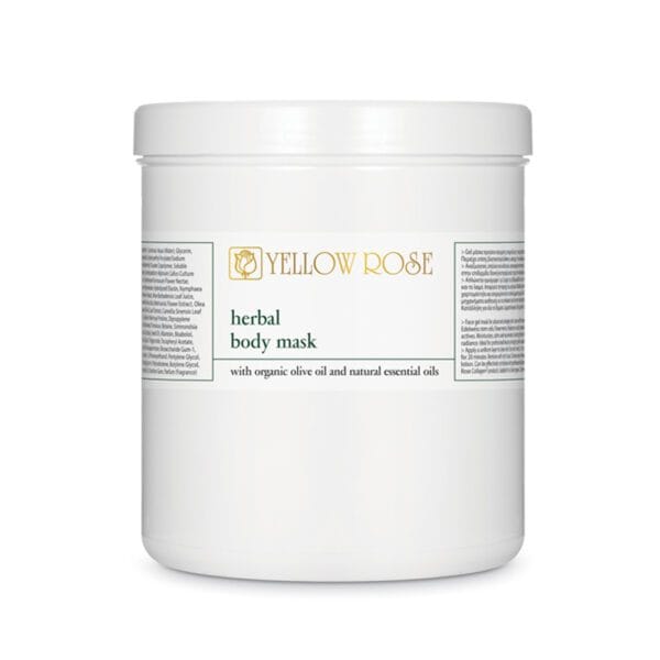 Yellow Rose Herbal Body Mask – Barojoša un mitrinoša ķermeņa maska. Barojoša un mitrinoša maska ķermeņa kopšanai ar 98% dabīgu sastāvu. Pateicoties īpašam sastāvam, tā atjauno un tonizē ādu. Olīvu lapu ekstrakts, kas iegūts no svaigām olīvu lapām izrāda spēcīgu antioksidantu aktivitāti (daudz augstāku nekā C vitamīns un zaļās tējas ekstrakts). Ekoloģiska neapstrādātā augstākā labuma olīveļļa, ko senie grieķi uzskatīja par “šķidro zeltu” – izcila dabiska ādas kopšanas eļļa, kas mitrina, nomierina un mīkstina ādas audus. Sakarā ar augstu ēterisko eļļu saturu, ieteicams izvairīties no lietošanas grūtniecības laikā, sauļojoties un uz ādas, kas ir jutīga pret ēteriskām eļļām.