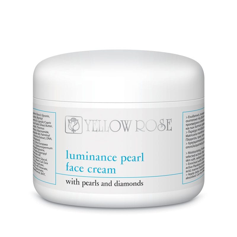 Yellow Rose Luminance Pearl Cream – Sejas krēms ar pērļu ekstraktu. Izsmalcināts 24-stundu krēms ar pērļu un dimantu mikrodaļiņām. Izteikts anti-age, nostiprinošs un izgaismojošs krēms ar mazmolekulāro formulu, dziļai un ilgstošai mitrināšanai, grumbiņu piepildīšanai un izlīdzināšanai “wrinkle-filler” efekts, ādas elastības un tonusa uzlabošanai. Ekskluzīvi oligopeptīdi veic dabīgo muskuļu relaksantu funkcijas – “botox-like” efekts. Āda tiek aizsargāta no strukturālām izmaiņām, kas rodas UV staru ietekmē. Luminance Pearl Cream – Sejas krēms ar pērļu ekstraktu piemērots normālai vai taukainai ādai.